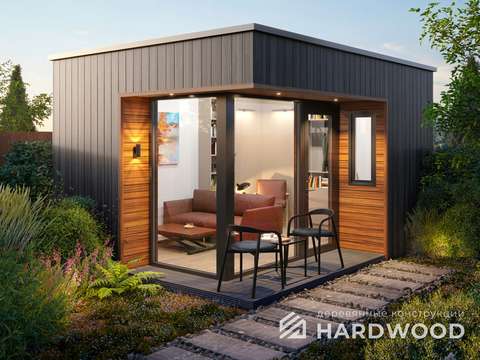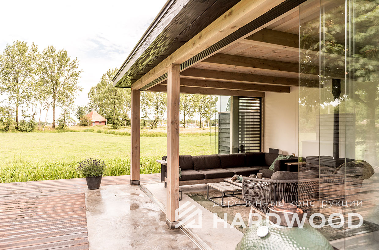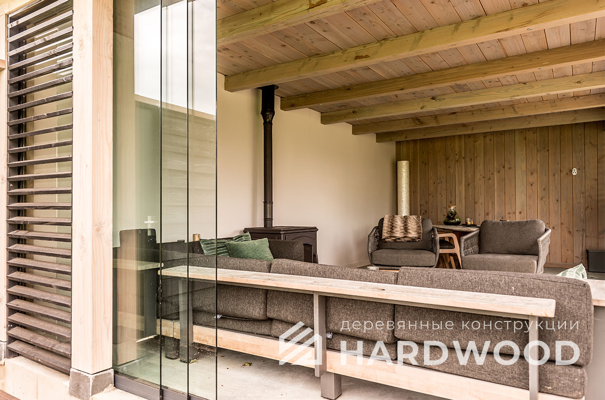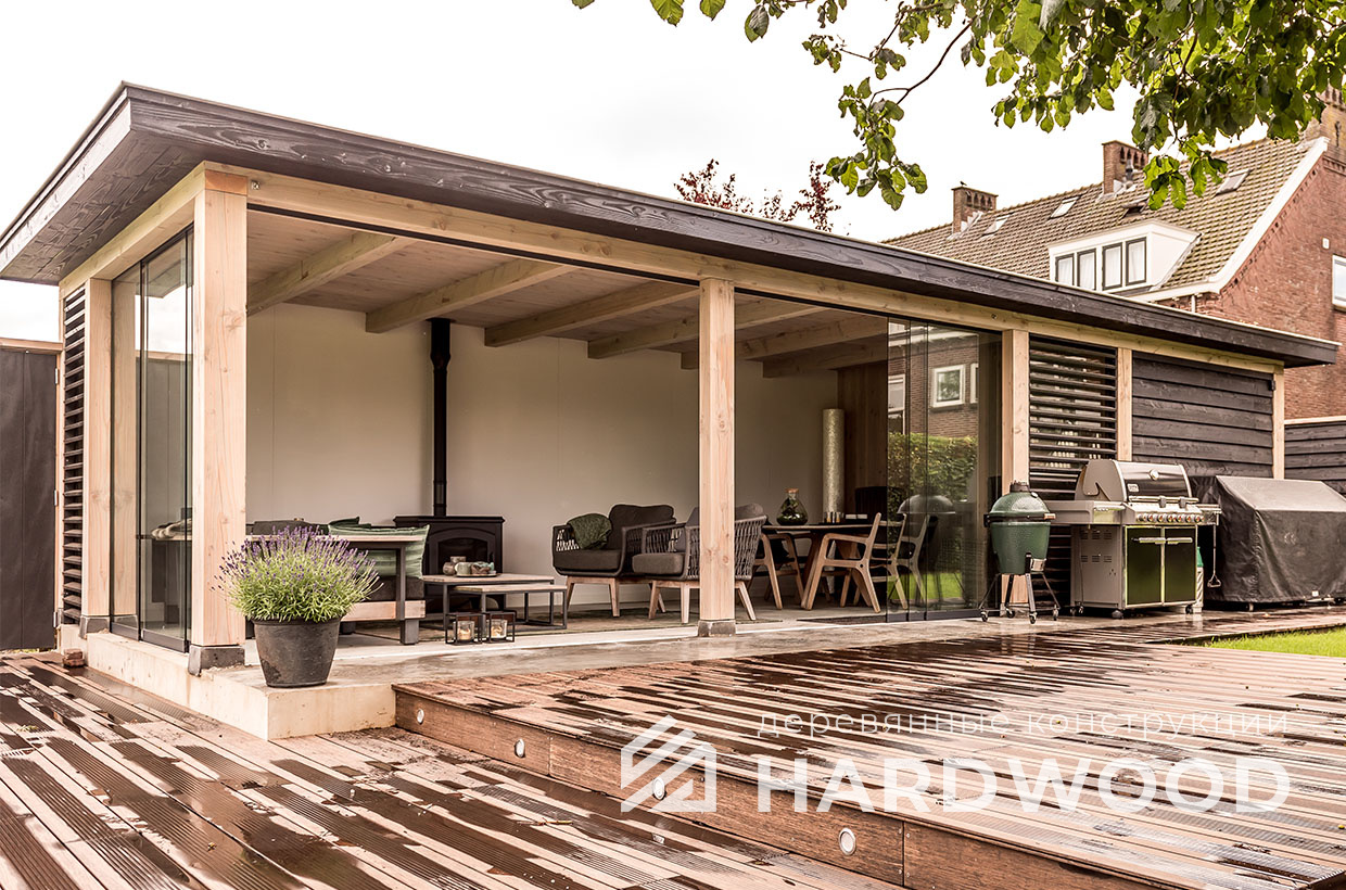 Определитесь с конструкцией и материалами. Для силуэта лофт характерны односкатные или плоские кровли, контраст дерева и металла, минималистичная обрешётка. Если важен всесезонный комфорт — подумайте о частичном остеклении, ветрозащите и подсветке; для летнего формата достаточно открытого павильона с навесом.