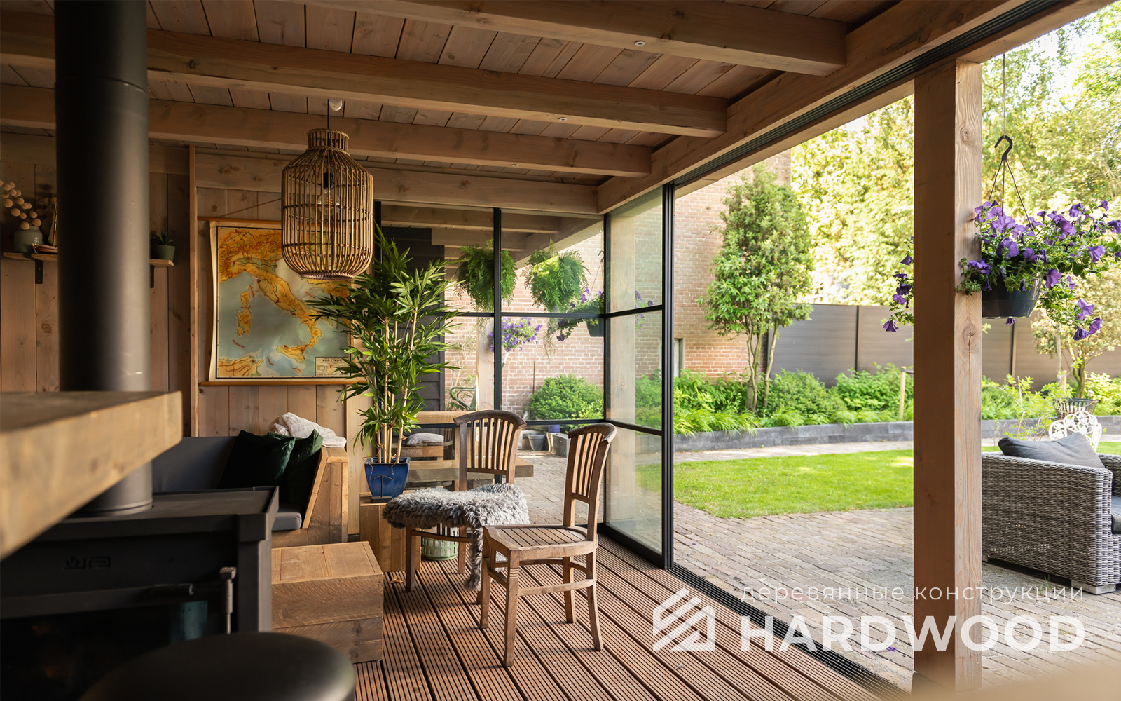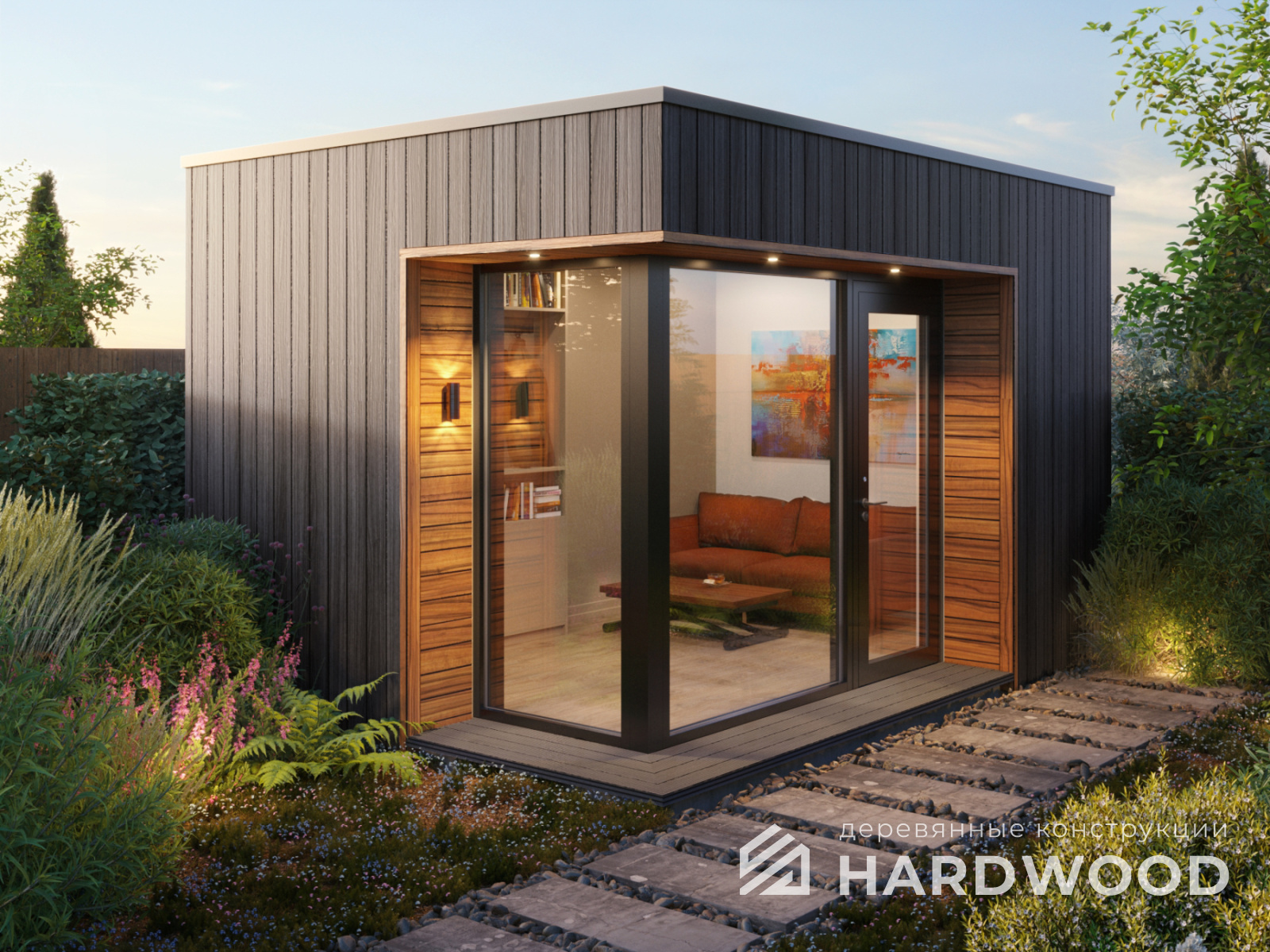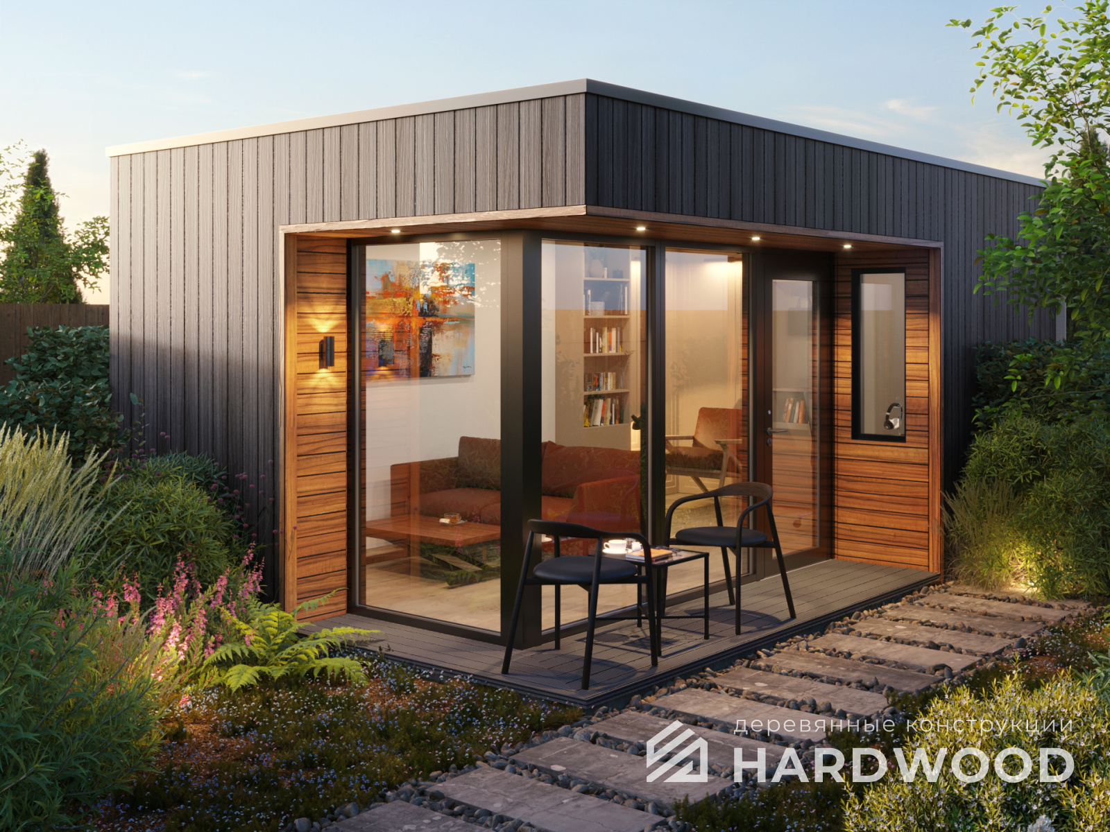 Определитесь с конструкцией и материалами. Для силуэта лофт характерны односкатные или плоские кровли, контраст дерева и металла, минималистичная обрешётка. Если важен всесезонный комфорт — подумайте о частичном остеклении, ветрозащите и подсветке; для летнего формата достаточно открытого павильона с навесом.
