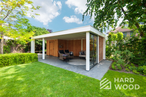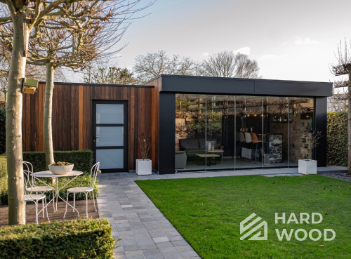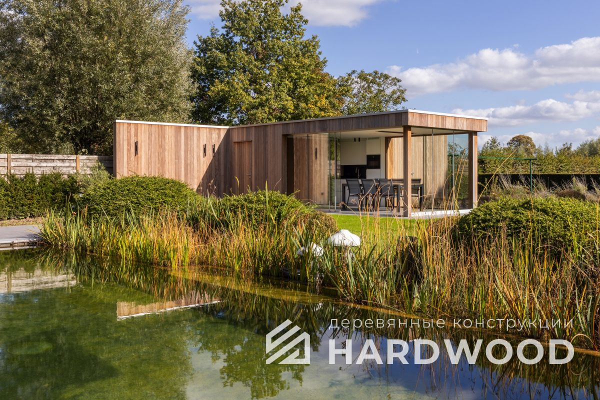 Лофт вырос из индустриальной эстетики: прямые линии, понятный каркас, фактура материалов на первом плане. В беседке это выражается в открытых балках, строгой геометрии, крупном остеклении и функциональности каждой детали. Никакой визуальной «тяжести» — только то, что работает на комфорт и стиль.