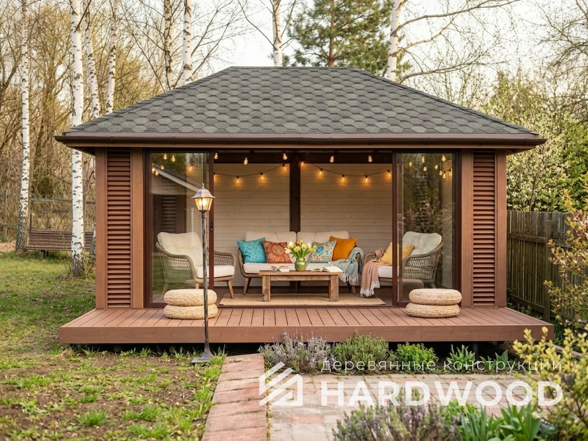 | Название модели: | Четырехскатная беседка из дерева №99 |